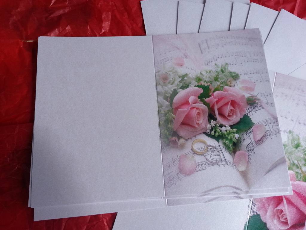 Af kort til festlige lejligheder, vielsesringe med lyserøde roser