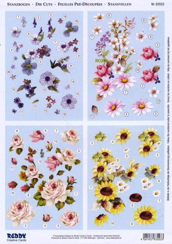 BILDER / PICTURES: Studio Light, Staf Wesenbeek, Willem Haenraets 3D Stanzbogen + 1 Hintergrundbogen : Blumen