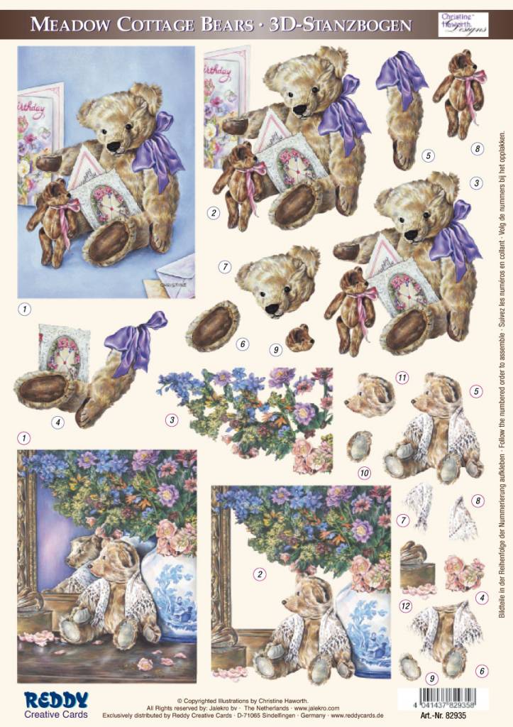 BILDER / PICTURES: Studio Light, Staf Wesenbeek, Willem Haenraets 3D-Stanzbogen Teddybären in Gedanken vertieft, Format A4