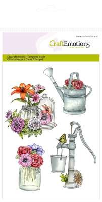 CraftEmotions Transparent stempel A6, Pumpe Giesskanne Botanical Summer
