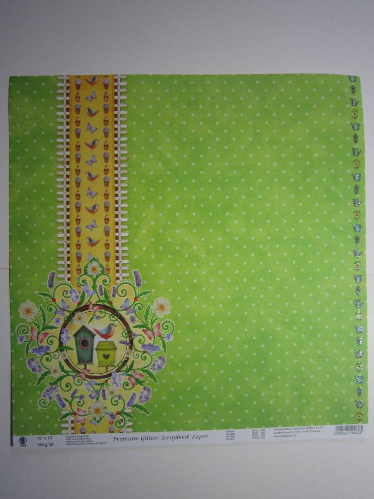 Designer Papier Scrapbooking: 30,5 x 30,5 cm Papier Premium Glitter Scraphook paper, "Garden", 190g/qm,