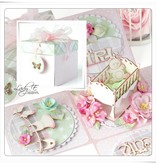 Juntas de chips: artículos para bebé y un mini cuna o cama 3D en un Explorerbox.