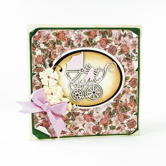 TONIC Ponsen en embossing sjabloon: kinderwagen met lint